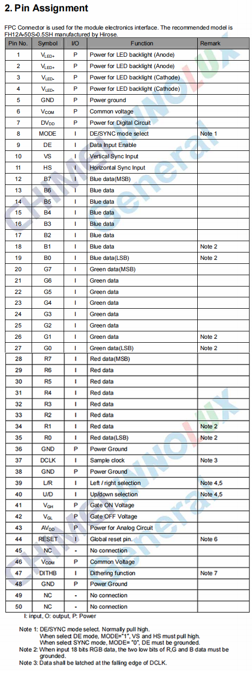 Flexible Interface Configuration: 50-pin FPC connector supports DE/SYNC dual timing modes, with built-in scan direction control and dithering functions for easy system integration.